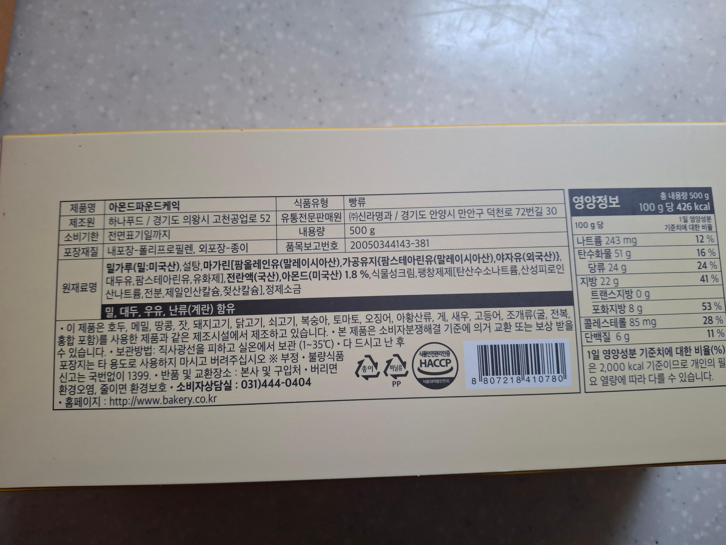 안전하게 만들어져 생산되는 케익 신라명과 아몬드파운드케익은 식품의약품 안전처에서 부여하는 HACCP인증을 받은 생산공장에서 엄격하고 철저한 위생관리를 통해 생산 및 제조가 된다고 알려져 있습니다.생산제조 유통 전 과정에서 식품 위생의 안전성을 확보하면서 만들어진 신라명과 아몬드파운드케익 믿고 드실수 있고 아이 어른 모든 연령대분들이 드셔되는 케익입니다.지금까지 내돈내산 내먹하고 남겨드린 신라명과 아몬드파운드케익에 대한 리뷰였습니다.감사합니다.