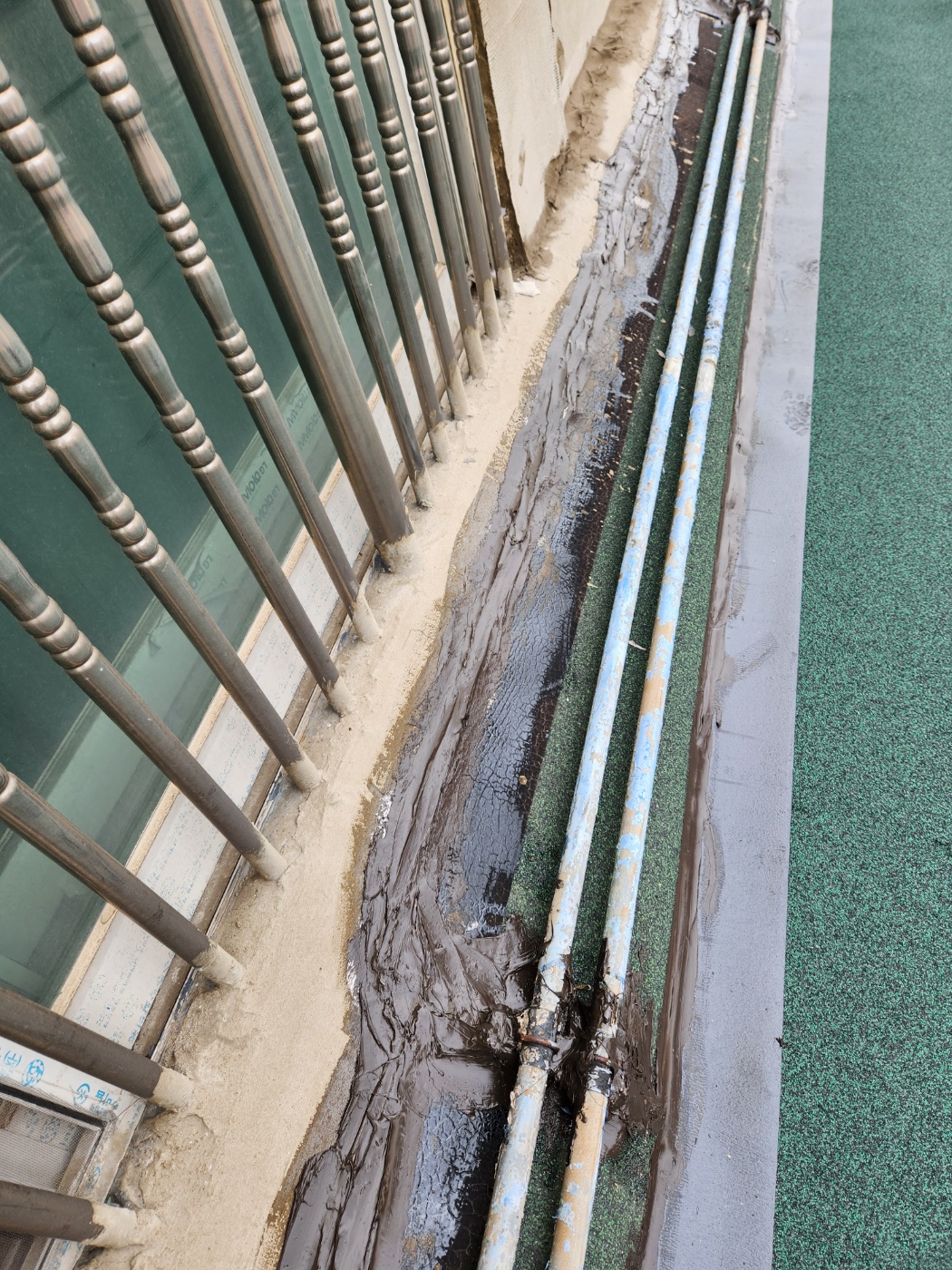 지붕상태 확장베란다 샌드위치판넬 상태입니다.판넬에서 비가 새는 문제가 발생하여 방수시트 설치 지붕공사 작업을 진행한 흔적이 보입니다.방수시트는 지붕자재를 설치하기전 내장재로 설치하는 방수자재 입니다.내장재를 외부에 설치하면 빠르게 변질 변형 부식이 발생하여 방수기능이 소멸되는 문제가 발생합니다.