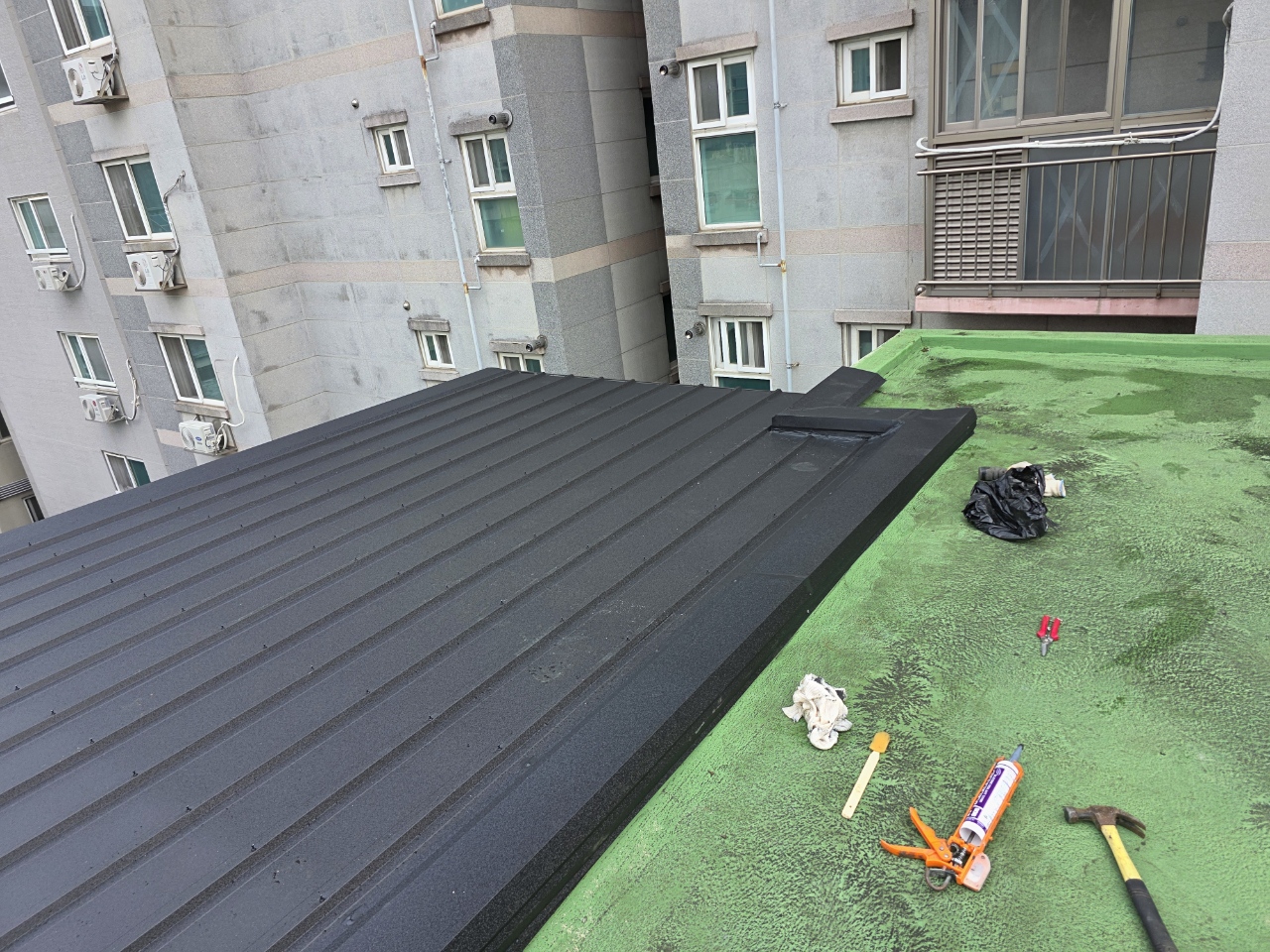 누수 해결 이번 빌라주택 옥탑 칼라강판 시공은 비가새는 옥탑지붕의 누수를 근본적으로 해결하였습니다.징크250 칼라강판 설치 지붕공사를 진행하여 지붕에 뚜껑을 씌어서 비가 들어가지 않도록 작업한것입니다.고객님이 선택하신 징크250 칼라강판 지붕자재를 사용하여 맞춤 시공을 진행하였습니다.언제든지 칼라강판 지붕공사에 대해서 궁금하신 점이 있으시면 연락주시기 바랍니다.언제든지 무료상담 입니다.감사합니다.