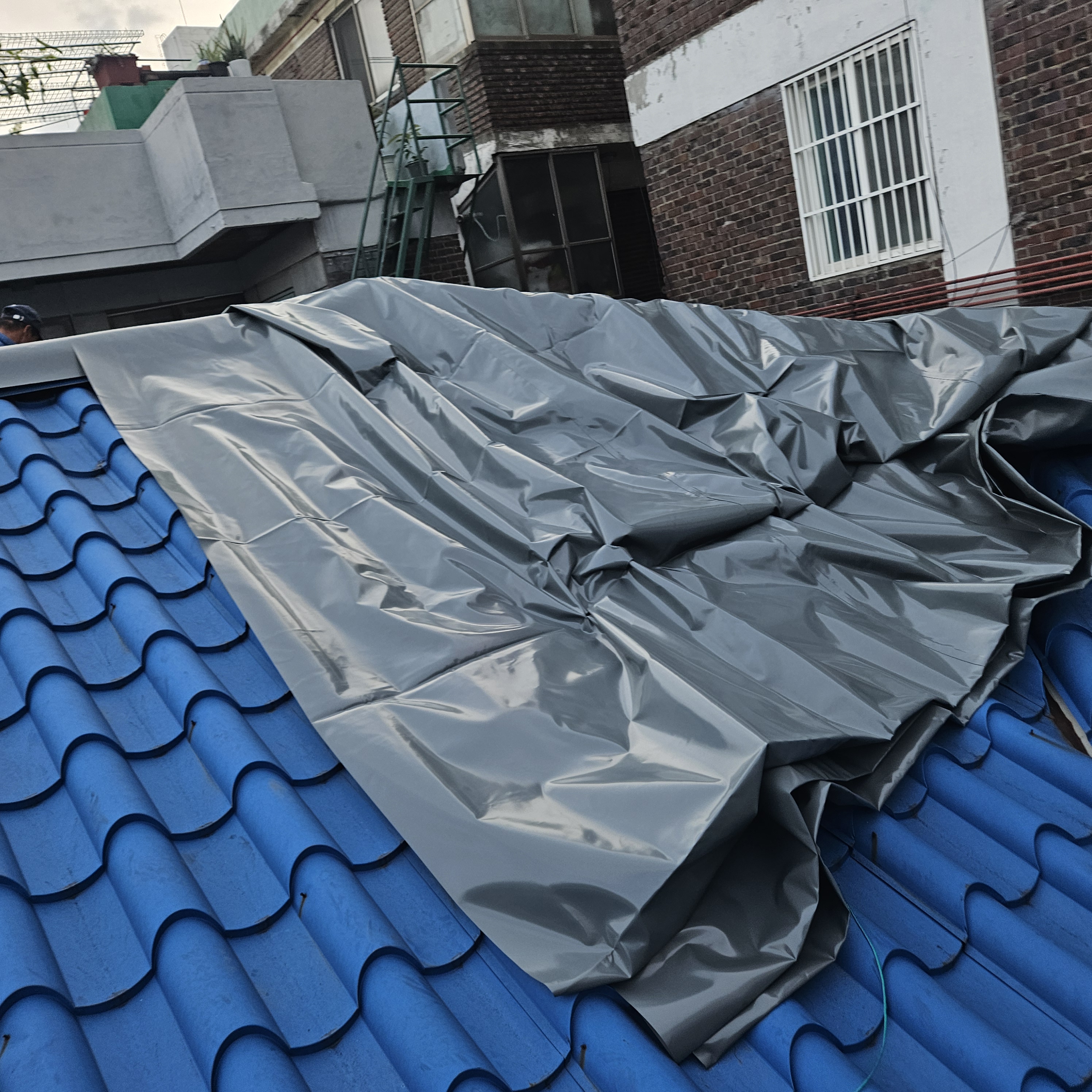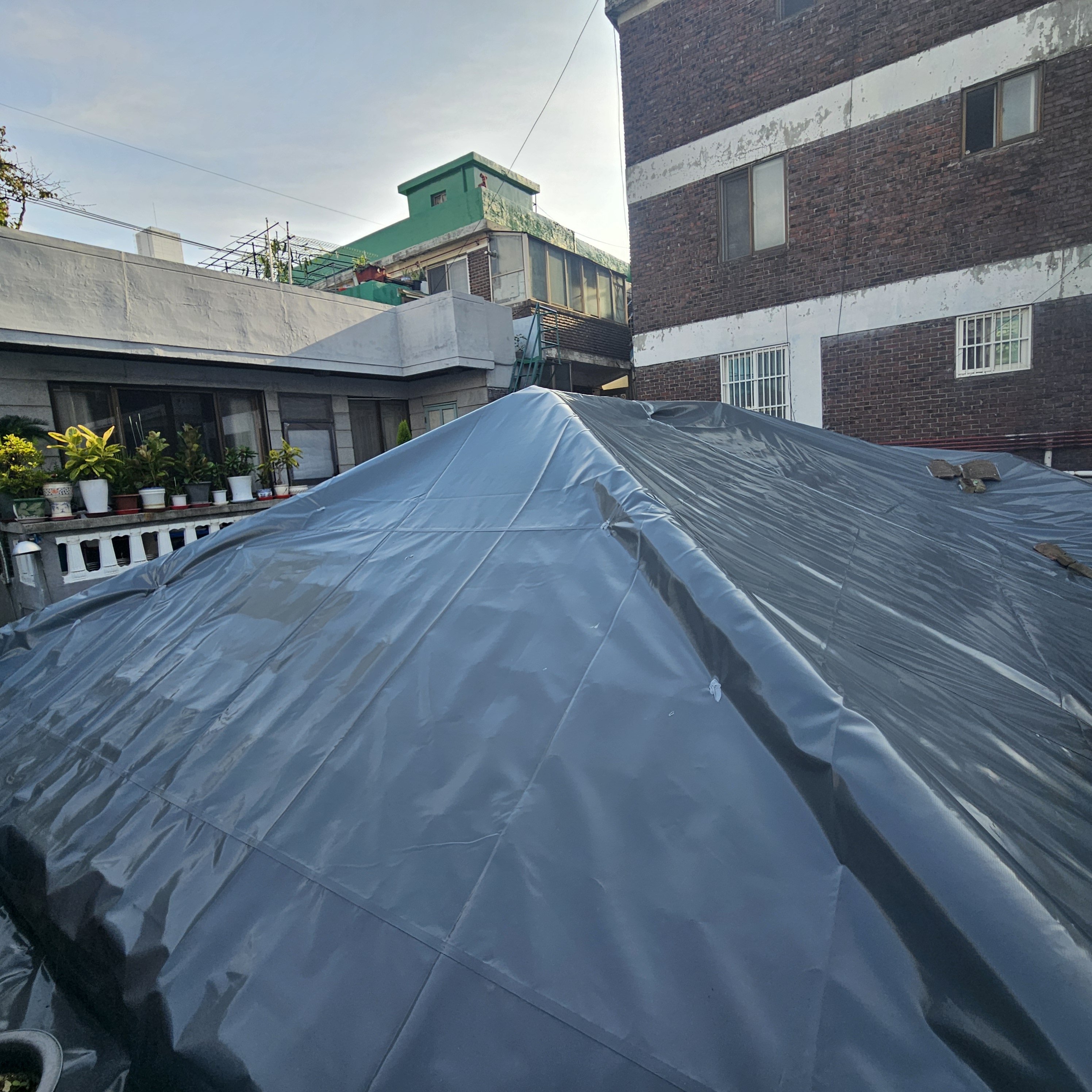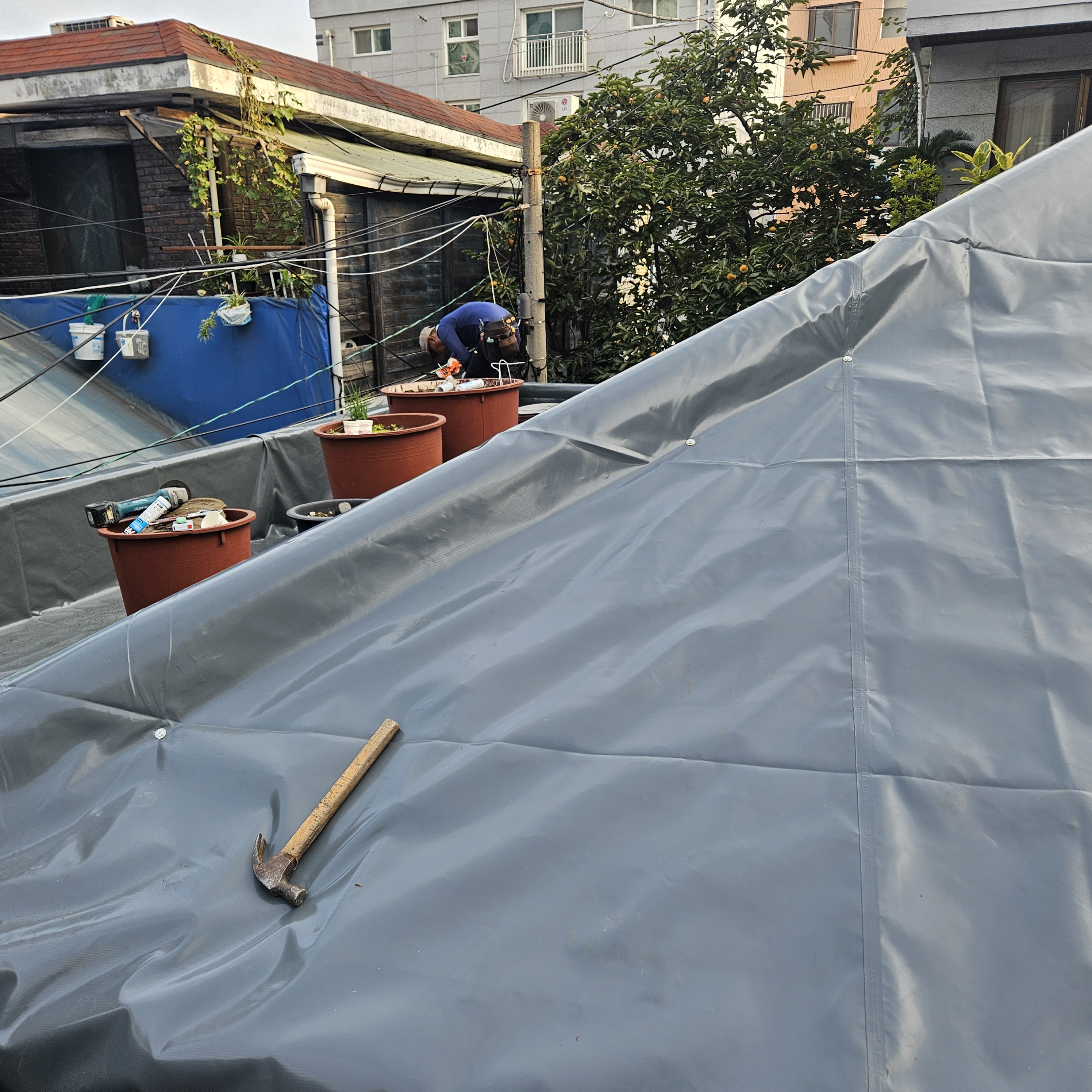 저렴한 시공 가격 타포린방수포 방수천막 설치 지붕방수 지붕공사 시공 금액은 다른 지붕자재와 비교하였을때 저렴하고 한번 시공하면 몇년간은 누수가 차단 가능하여 재개발지역 또는 신축예정지역에 위치한 주택 및 건물에 많이 설치 의뢰가 오고 있는 상황입니다.