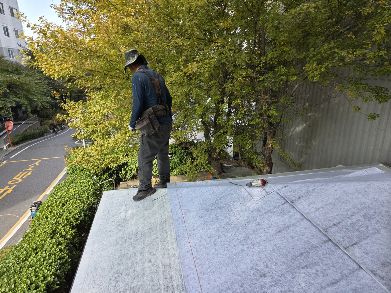 방수시트 기능 방수시트는 아스팔트슁글 아래에 설치되면 누수와 수분 침투를 막아주는 기능을 해주는 1차 방수층 입니다.아스팔트슁글 자체만으로도 방수기능이 포함 적용되어 있어서 누수차단이 가능하지만 방수시트가 시공이 되어있으면 만약에 발생할지 모르는 누수를 완전하게 차단가능합니다.방수시트를 시공하면 비가 새서 발생할수 있는 원두막 정자 구조물의 손상 및 곰팡이 발생을 미연에 방지 할수 있습니다.