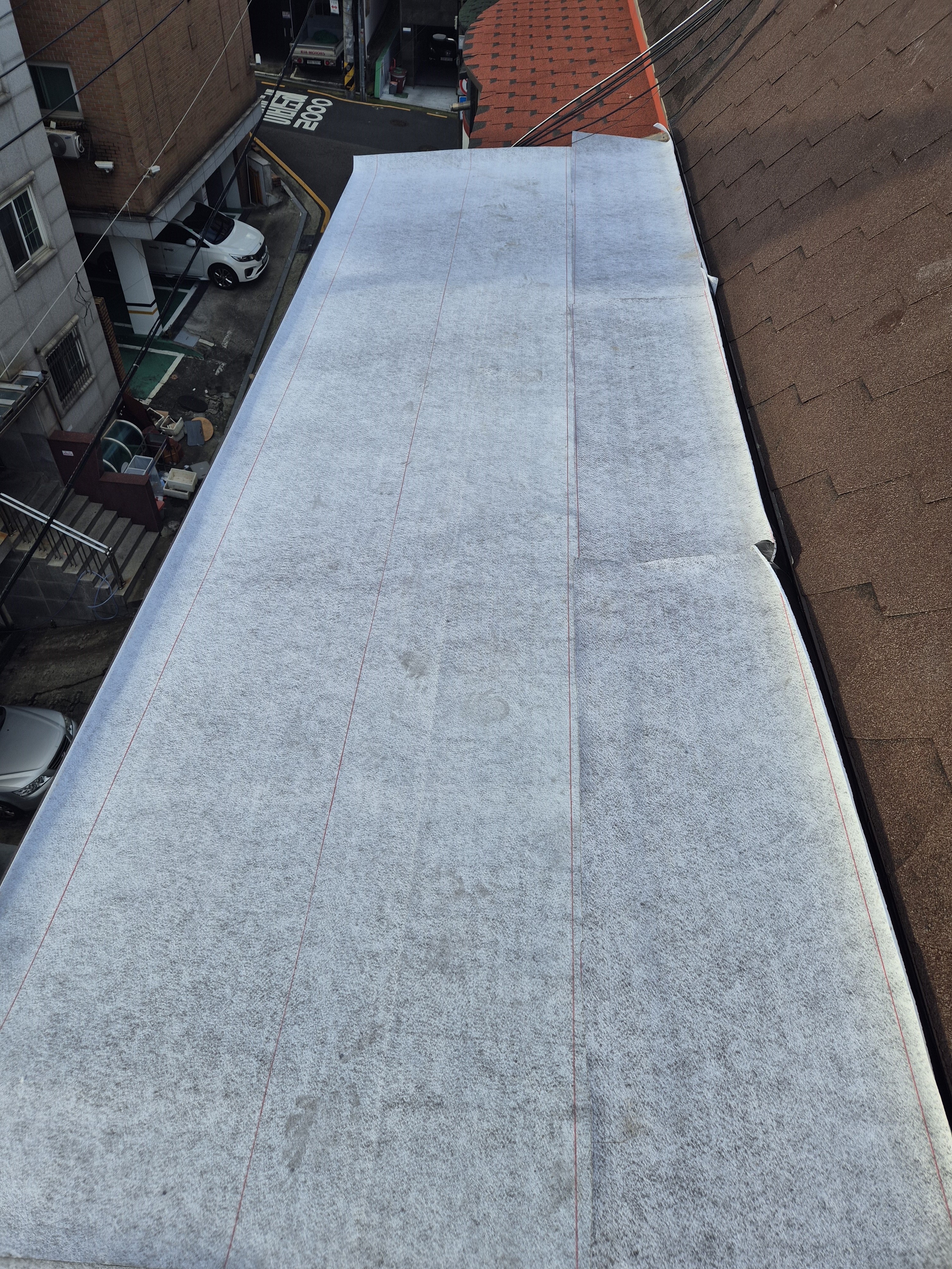 안녕하세요 금일 소개하여드릴 현장은 관악구 봉천동에 위치한 빌라 주택 입니다.빌라 주택 4층에 설치된 확장베란다 지붕에서 비가오면 누수가 발생하여 실리콘 작업 및 여러가지 방수작업을 하였지만 누수가 해결도지 않어서 베란다 지붕과 벽면 지붕에 방수시트 및 아스팔트슁글을 시공하여 지붕을 하나의 방수층으로 만드는 지붕방수 지붕공사 작업을 진행하였습니다.