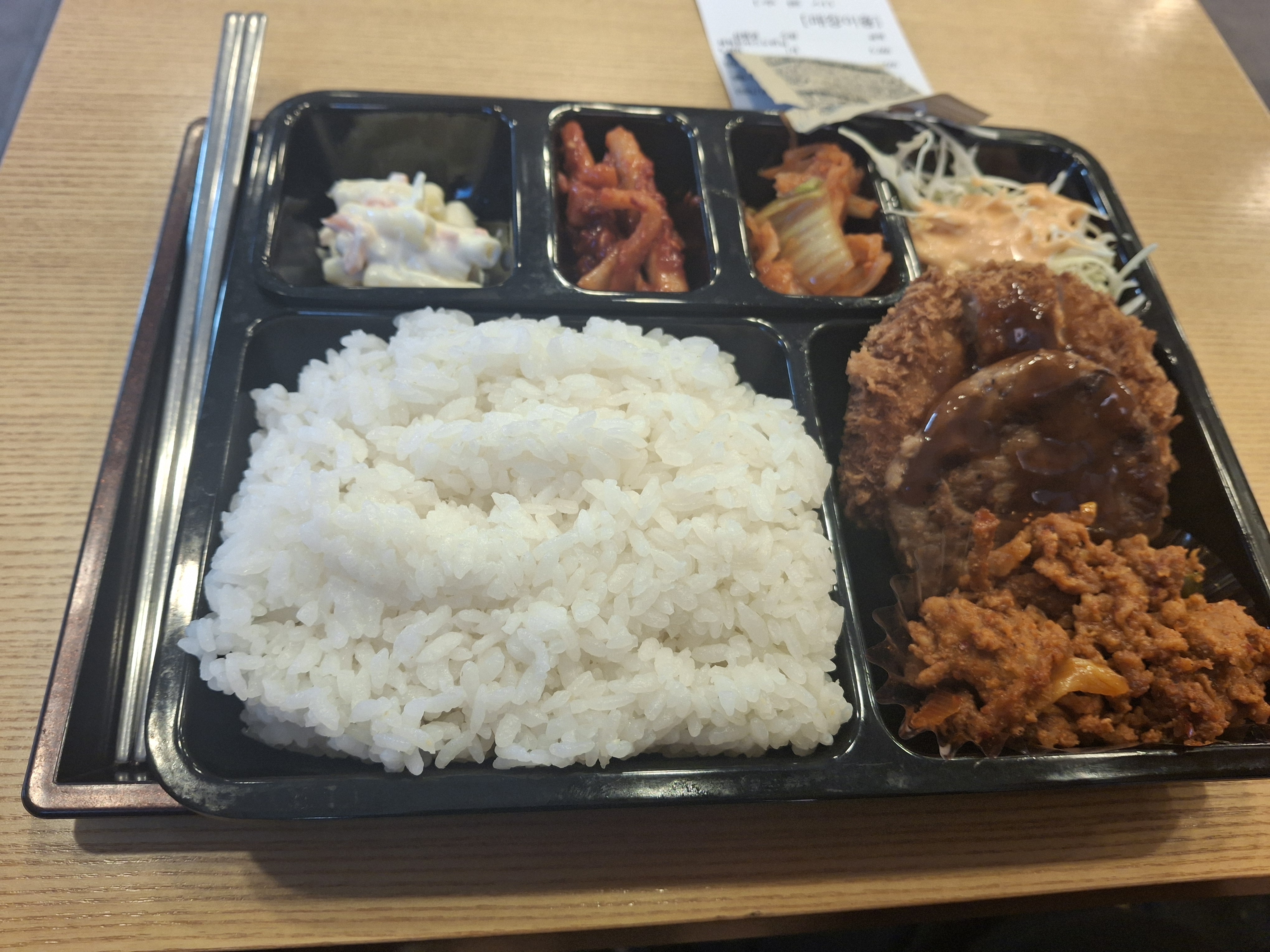 진열코너 식사하면서 추가로 드실수 있는 음료수 간단조리 제품이 진열코너에 비치되어 있습니다.전체적으로 빠르게 주문 빠르게식사 깔끔한 식기반납등에 최적화된 매장 구조였습니다.드디어 제가 주문한 제육돈까스도련님 메뉴가 나왔습니다.이 메뉴는 든단하게 먹고 싶다하는알 선택하면 만족도가 높은 메뉴입니다.